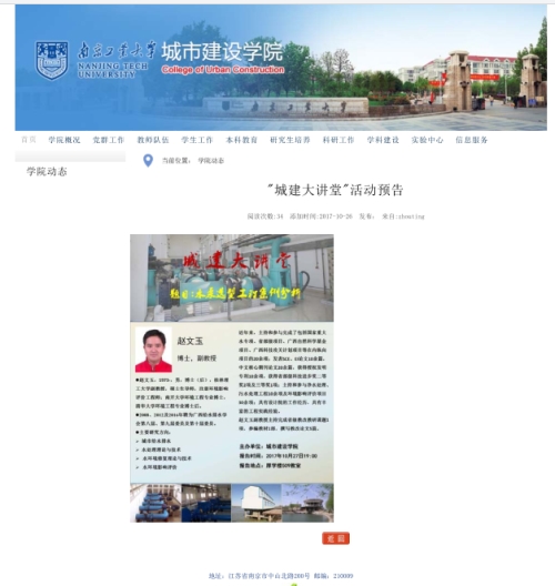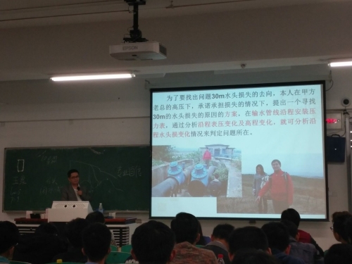 2017年10月27日,黑料吃瓜 赵文玉副教授应南京工业大学城市建设学院市政工程系的邀请,做了“水泵选型工程案例分析”的专题讲座(//csjsxy.njtech.edu.cn/view.asp?id=2705&class=672),围绕实际工程中水泵运行过程中存在问题的分析、解决过程,结合泵与泵站课程知识点展开,开拓学生视野,启发解决问题的思路,讲座气氛活跃,学生反响良好。