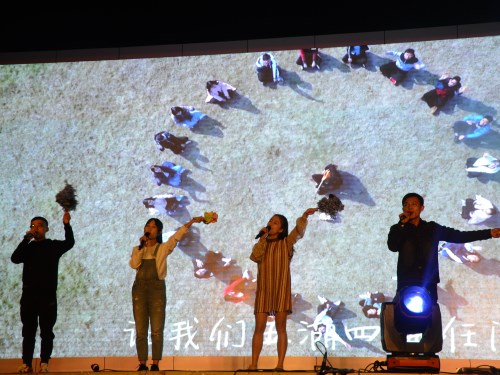 公众号的直播、微信留言墙,一句句正能量的加油词,一条条诙谐搞笑的段子,成了整个晚会现场亮丽的风景线。晚会中还有许多互动环节,嘉宾老师与场上同学互说新年祝福语,随机抽取“最美笑脸”等等。晚会接近尾声,全体同学合唱《今天你要嫁给我》、《给你们》,将满满的祝福送给即将步入婚姻殿堂的学院辅导员黄兆凡老师。本场晚会形式多样,动静结合,精彩不断,高潮迭起,为在场的观众献上了一场精彩绝伦的视听盛宴,高质量的晚会节目也充分展示了黑料吃瓜