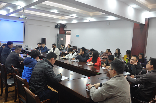 在雁山校区萃华楼四楼12407学院会议室召开新进教师座谈会,学院在校的领导班子成员、党委委员、各教研室(实验室)主任、2015-2017年入职的新教师参加了座谈会,会议由学院党委书记王璐主持。