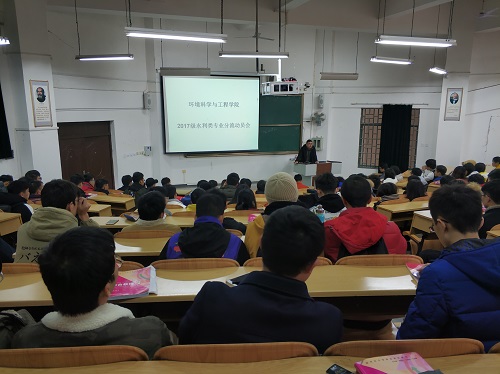 在05101教室召开了2017级水利类专业分流动员大会。此次动员会邀请地下水科学与工程教研室李亮老师、水文与水资源教研室张帅普老师作为主讲嘉宾,会议由2017级辅导员罗义淞主持。