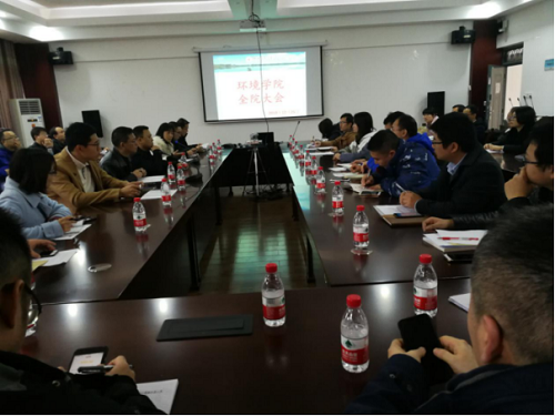 在雁山校区萃华楼四楼的12407学院会议室召开全院教职工大会,学院全体教职工出席了本次会议,会议由学院常务副院长(正处级)游少鸿教授主持。