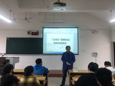 为防范和减少各类灾害事故发生,确保学生生命财产安全,学院高度重视,要求三月三和清明节假期安全教育要全员参与。学院分层、分类的组织了在校生安全教育,包括学生党员、班干部(信息员)、学生会分团委、宿管委等主要学生骨干的专题安全教育;利用成长成才课进行的全年级安全教育大会;班主任以“安全教育”为主题的班会,全方位的对学院在校学生进行安全教育。