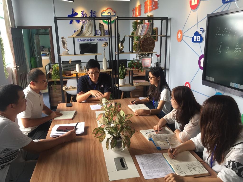 在雁山校区萃华楼12408办公室召开2019年秋季学期学生工作务虚会。会议由学院党委副书记郝文佳主持,全体专职辅导员参加会议。