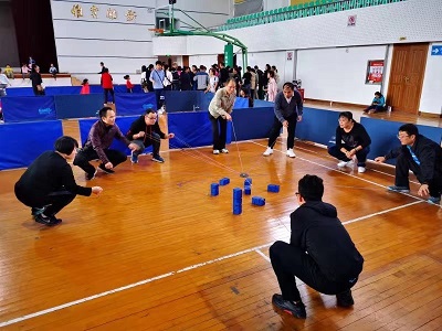 教职工们在快乐运动会中组团参赛,不仅有利于增进交流,加深互动,还可以提高身体素质,以更加健康活力的精神面貌投入到学校各项工作中。