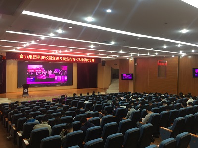富力集团成立于1994年,总部位于广州,经过20余年高速发展,已成为以房地产开发为主营业务,同时在酒店发展、商业运营、文体旅游、互联网产贸、医养健康、物业服务、设计建造及创新服务平台等领域多元发展的综合性集团。招聘会伊始,富力集团公司负责人通过播放短片来对该公司运营状况做了简单的介绍,紧接着从其行业领先性项目工程展示了该公司良好的就业前景和行业竞争力,同时对公司招聘岗位、招聘流程、工资薪酬和工作环境做了详细的阐述。随后,在场应届毕业生针对自身以及公司招聘情况提出了相关问题,公司负责人给予了明确的回复和建议,并做出了专业的就业指导。最后,富力集团的主要负责人在现场向同学们分享了就业经验,开展了较为深刻的就业指导。至此,招聘会圆满结束。