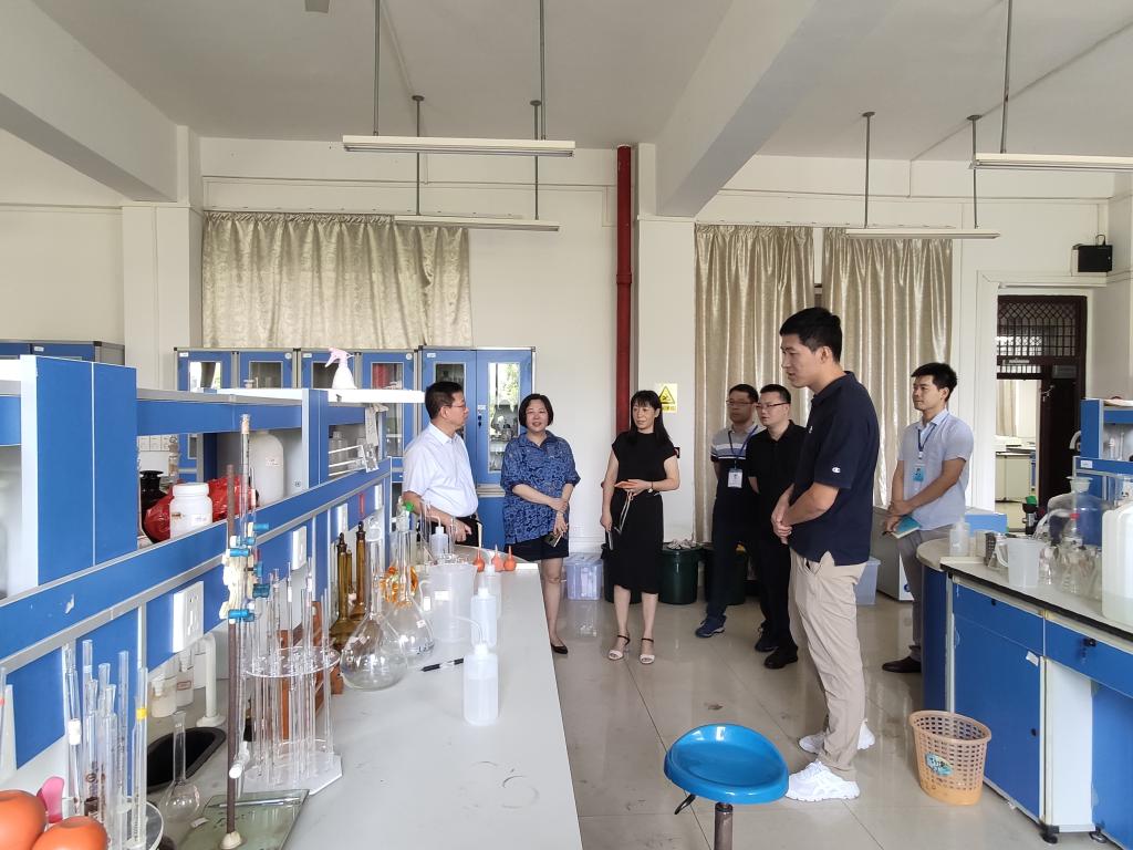 学院领导班子一行首先走访了实验室,检查各实验室卫生、消防用电、以及药品存放等情况,并对防范消防安全和特殊药品试剂储存等问题进行了重点指导。在与实验室师生交流中,学院领导班子指出了各实验室安全工作的不足和改进措施,对师生们提出的问题,也认真记录,细致解答,并肯定了大家在科学研究中付出的努力,鼓励他们继续努力,争取为学院为学校再添新成果。