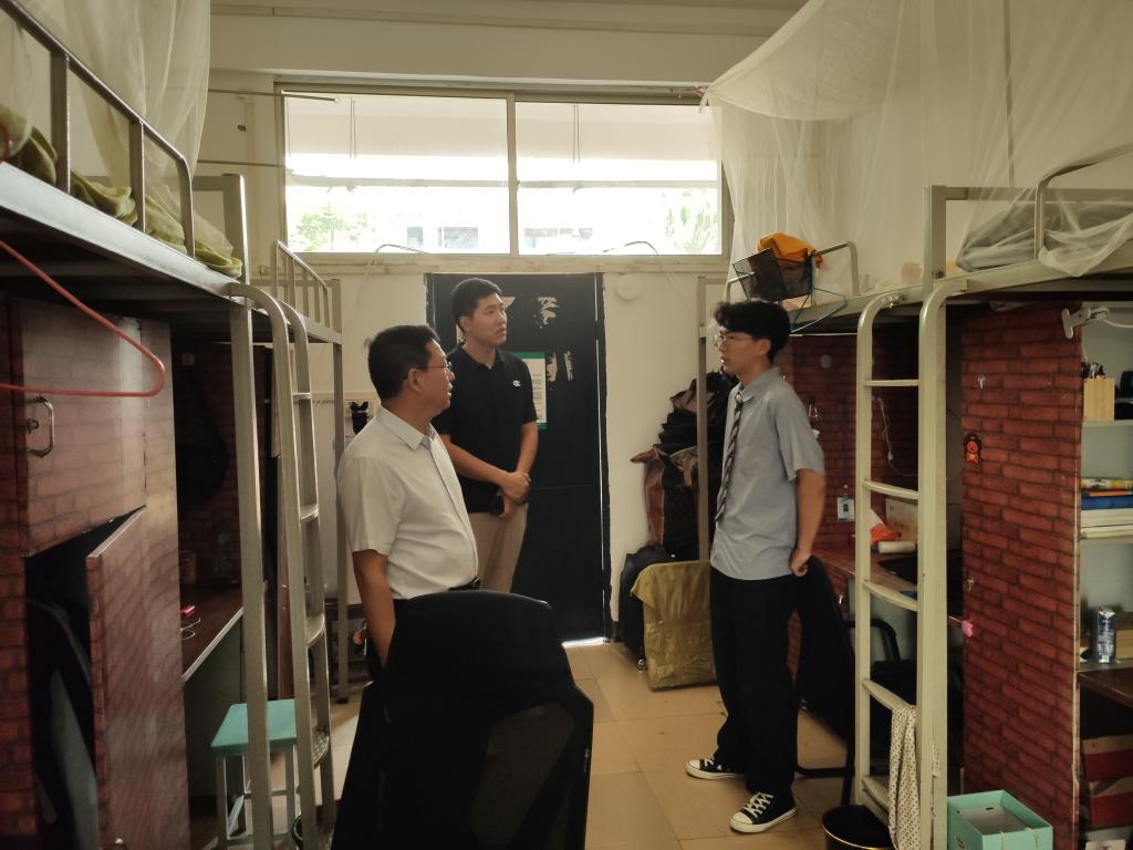 随后,班子全体成员在各位辅导员的陪同下,分组走访了本科生和研究生宿舍。领导们主要针对环境卫生、用电安全、吸烟酗酒等内容逐项进行了细致排查。学院领导在走访过程中,与同学们进行了亲切交谈,了解大家的学习、生活情况,希望同学们相互关心,相互帮助,共筑和谐小家。
