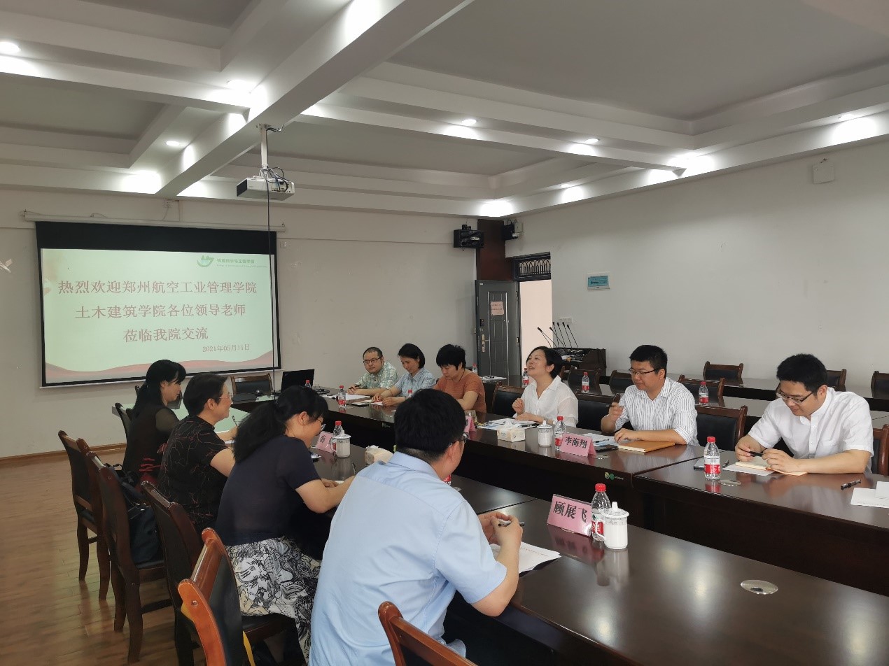 2021年5月11日,郑州航天工业管理学院土木建筑学院在院长薛茹教授带领该校给排水系的专业负责人高军侠教授,系主任李莲秀副教授到黑料吃瓜 与给水排水教研室的相关老师进行交流。黑料吃瓜 的相关领导和给水排水教研室的老师出席了交流会。