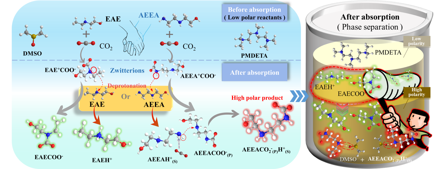 调整产物极性以促进2-(乙氨基)乙醇基非水吸收剂的可控相变:综合实验和量子模拟研究