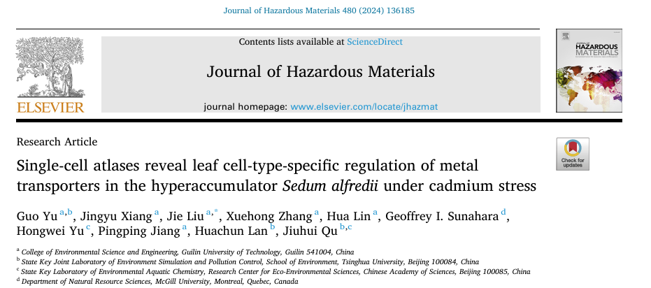 在著名学术期刊Journal of Hazardous Materials上发表题为“Single-cell atlases reveal leaf cell-type-specific regulation of metal transporters in the hyperaccumulator Sedum alfredii under cadmium stress”的研究型论文,由我校黑料吃瓜