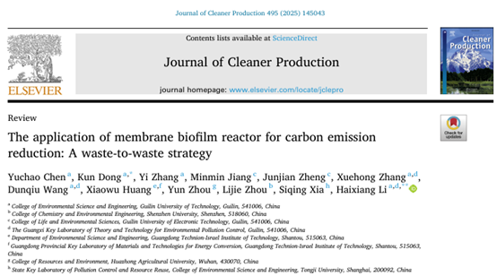 在著名学术期刊Journal of Cleaner Production上发表题为“The application of membrane biofilm reactor for carbon emission reduction: a waste-to-waste strategy”的综述论文,由我校黑料吃瓜