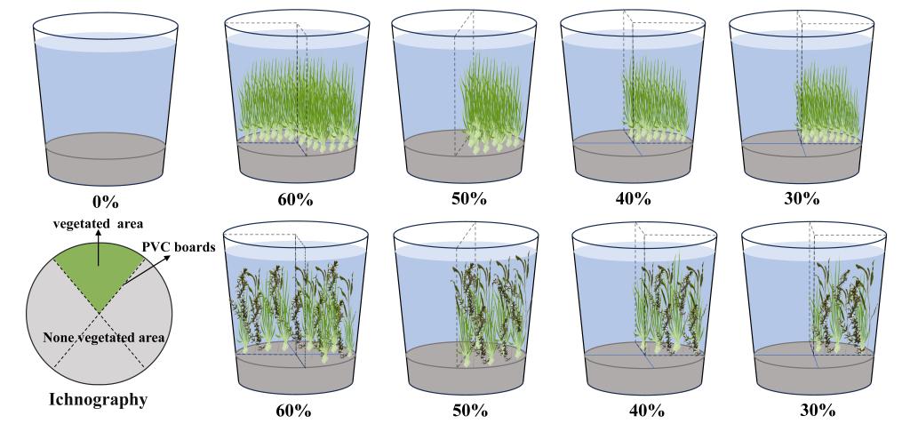 近几十年来,气候变化致使极端降雨事件频发,而在土壤养分丰富的农业流域中,这些事件会导致大量营养物质随雨水或地表径流汇入受纳水体,从而可能引发一系列生态问题(如水华),威胁水生生态系统的稳定性和健康。大量的研究证明,沉水植物可通过吸收营养、抑制浮游植物生长、抑制沉积物再悬浮等方面发挥强大的清水效应,从而有助于提升系统应对干扰的缓冲能力(Buffering capacity)与弹性(Resilience)。然而,不同的沉水植物展现出独特的生态功能和适应性特征,且不同物种组合的清水效应存在显著差异,关于富营养水体修复的最佳物种组合尚需进一步探究。另外,沉水植物覆盖度是评估水生生态系统中营养减排和水质管理成功与否的关键指标,尽管大量研究证明了沉水植物覆盖度与水质的积极关系,但在气候变化导致营养脉冲频发的背景下,多大覆盖度的沉水植物即可维持系统的稳定?目前尚不清楚。因此,本研究通过原位中宇宙实验,设置了不同覆盖度(0%-60%)与群落组成(单一苦草群落vs黑藻+苦草+马来眼子菜的多物种群落)的沉水植物群落,并模拟了营养脉冲事件(总氮:0.7 mg/L→2.0 mg/L,总磷:0.03mg/L→0.2 mg/L)。