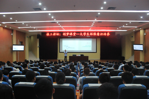 随着世界各国经济的迅速发展和生产力水平的不断提高,人类对环境的影响越来越大,环境问题已日益突出和尖锐化,严重的生态破坏和环境污染问题已成为当代社会面临的重大问题。为进一步培养大学生环保意识,4月16日上午,学院于雁山校区图书馆报告厅开展广西大学生环保创新创业论坛之《创梦课堂:大学生环保意识培养》主题讲座。主讲人为桂林溢达纺织有限公司徐衍宁副总经理。讲座由学院党委副书记郝文佳主持。学院大学生创新创业项目主持、参与约200人参加讲座。