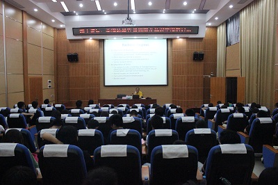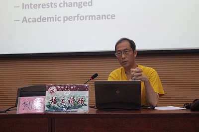 李老师为同学们介绍了在美国的环境专业里大学生需要掌握的基本技能以及需要学习的一些学科。他列举了很多美国学生的学习特点和学习的内容来与中国学生进行对比,希望能够让同学们明白在大学里自己应该如何完善自己,提高自己,与此同时,他特别强调,中国学生的学习状态和美国的不同,学生应该提高自己自主的学习能力和实践动手能力的重要性。在讲座结束后,有同学问到留学问题,李教授说道,同学们要想去美国留学需要考托福或者雅思,还要有老师的推荐信,当然还要有自己的学习成果。