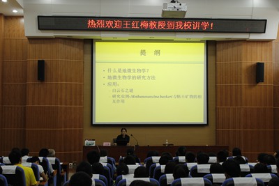 在雁山校区12栋报告厅联合举办了主题为“Geomicrobiology:Concept Methodology and Case Studies”的讲座,中国地质大学环境学院副院长王红梅教授主讲本次讲座,学院教师及研究生一百五十余人听取了本次讲座。