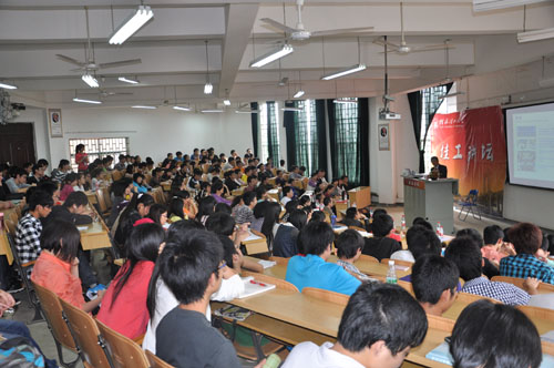 院长王敦球教授主持,相关专业师生共400余人参加了此次讲座。