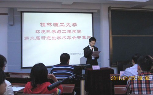 随后,环境学院朱义年副院长发表讲话,他说,研究生学术年会给在校研究生提供了一个很好的交流平台,同学们要积极参与其中,提高自己的科研学术能力。希望在同学们的努力下,使研究生学术年会越办越好。