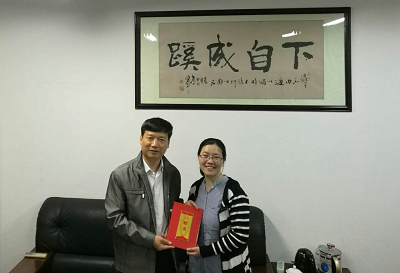 解庆林校长为章春芳博士颁发客座教授聘书