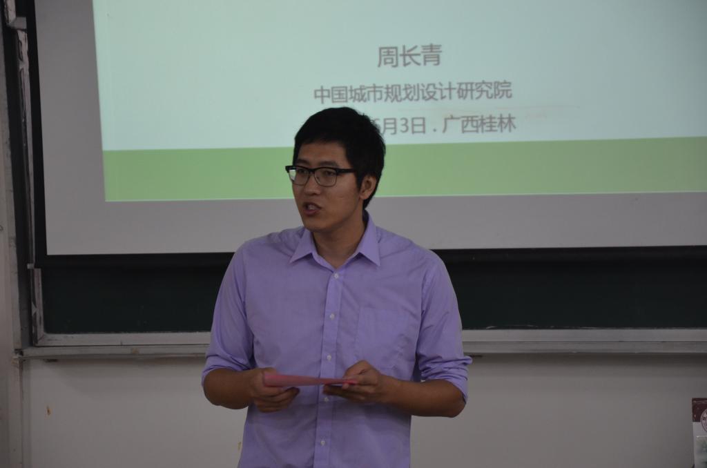 最后,周博士对海绵城市的创新设计的方法提出了自己的建议:在城市开发建设中,加强规划建设管控,通过源头减排、过程控制、系统治理,采取屋顶绿化、透水铺装、下凹式绿地、雨水收集利用设施等措施,使建筑与小区、道路与广场、公园和绿地、水系等具备对雨水的吸纳、蓄滞和缓释作用,有效控制雨水径流,使老百姓切实感受到“小雨不积水、大雨不内涝、水体不黑臭、热岛有缓解”的实效。会后,同学们积极地与周博士进行了交流。