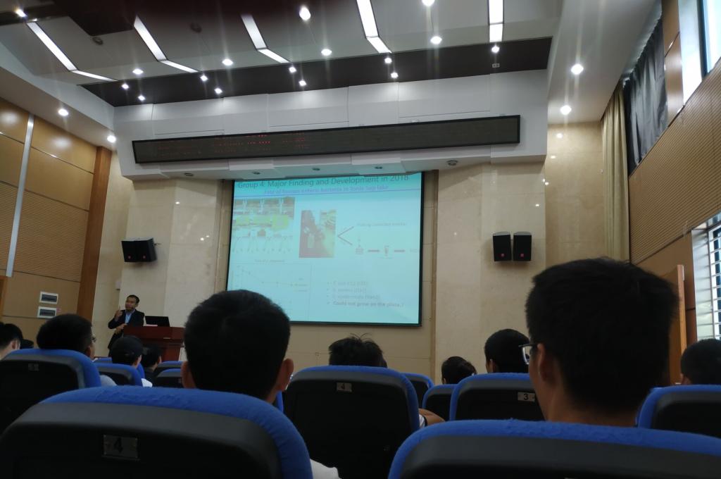 HUL seingheng教授以“柬埔寨洞里萨湖环境保护平台的建设”为题,围绕产业、环境、文化人类生活这四个方面对伟大的湖进行介绍;HUL seingheng教授提出要建设好洞里萨湖环境保护平台就需要正确的科学信息的观点,其中包括四点:正确认识科学背景、智能问题要清楚地识别、简洁的设计方法、更好的政策文件,并列举出2018年重大发现和发展,进一步说明建设环境平台各方面的利弊。接着,HUL seingheng教授讲述对环境管理有用的知识和工具,同时介绍目前柬埔寨有关环境保护平台建设的政策制订及推行。最后,HUL seingheng教授对本次会议的重点再次进行点评和巩固。