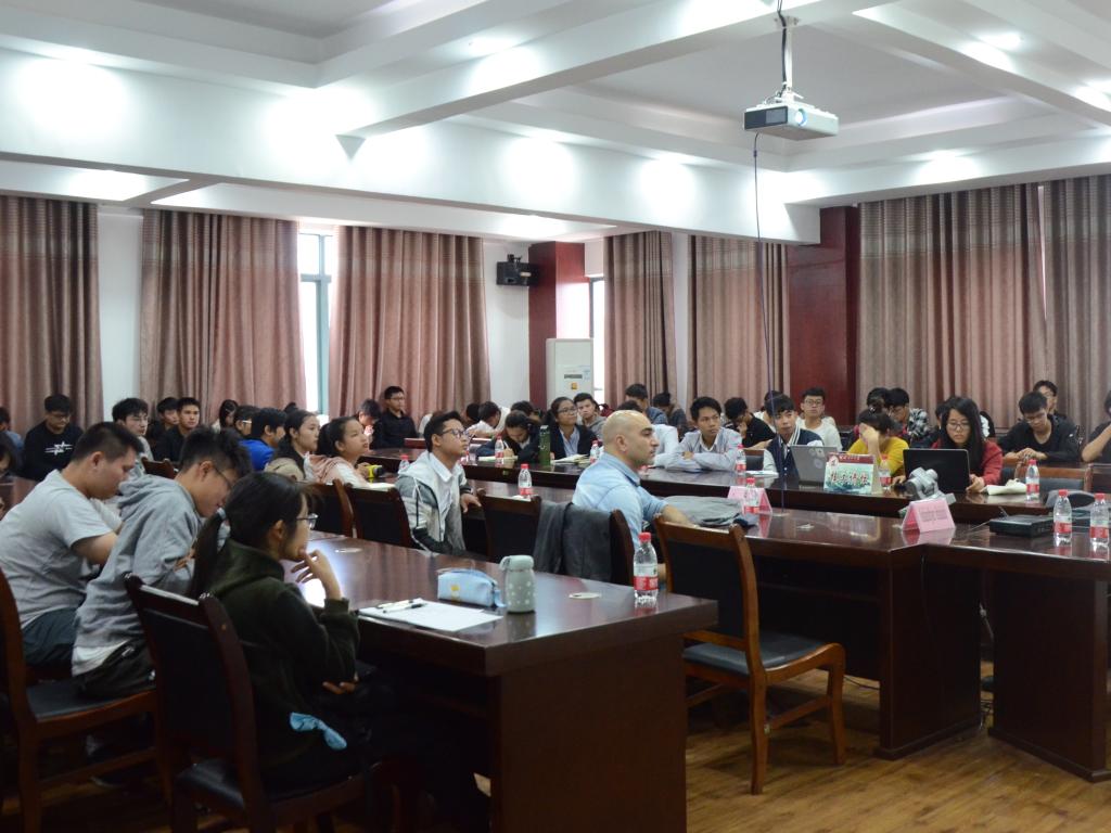 讲座开始,Asfandyar shahab首先对桂林市城市道路的重金属的实验数据进行了分析。Asfandyar shahab从Geo-accomulation指数、生态风险指数、I-go类、空间分布等方面得出了非致癌风险的健康风险评估。其中,Aeed Rad先通过地球上的耕地面积、种植面积百分比以及水资源供应与需求的关系阐述管理资源的重要性。Aeed Rad提出全球还需要改善咸水、淡水、河流湖泊、地下水以及极地冰的资源管理,并且他建议桂林市要想提高水资源利用效率,可以采用滴灌这种传统方法。在会议结束时,同学们就自己心中的疑惑提出来,得到了两位博士讲师耐心解答。最后,两位博士讲师与黑料吃瓜