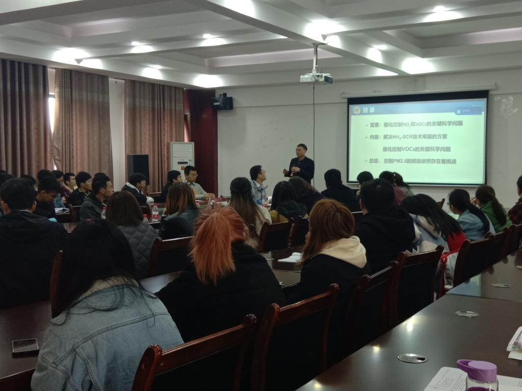 本次讲座中,唐幸福教授以大气污染物PM2.5的重要前体物氮氧化物(NOx)和挥发性有机物(Volatile Organic Compounds.VOCs)的危害,阐述分析其对环境的污染严重性,使同学们了解到氮氧化物和挥发性有机物对大气环境和人体健康造成的危害。其后,唐幸福教授从多种大气污染物的实验数据分析,引出了催化控制NOx和VOCs排放是最有效技术之一,并分享了其团队在大气污染控制领域取得的一些研究成果。最后唐幸福教授还提到了目前催化控制NOx和VOCs排放所面临着的技术、经济等的挑战。