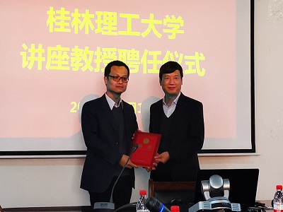 2019年12月12日,清华大学刘锐平教授受聘为我校讲座教授,受聘仪式上,学校校长解庆林教授代表学校,为刘锐平教授颁发了讲座教授聘书。受聘仪式结束后,刘教授以“科学思维与工程概念:环境工程学科研究生培养”为主题,在雁山校区萃华楼12407会议室首次授课。解庆林校长、李艳红副院长、黄亮亮副院长等学院领导班子及80余师生全程聆听了报告。