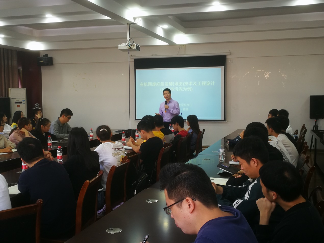 ,在雁山12407会议室,为市政工程2020级硕士研究生和给排水2017级本科生作了关于“有机固废好氧发酵堆肥技术及工程设计(以城市污泥为例)”为主题的学术报告。报告会由给水排水教研室主任李海翔老师主持。