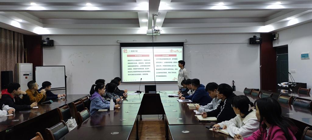 本科生第一党支部在12407教室召开本学期发展对象答辩会,支部书记潘泓序老师、全体党员以及六名入党积极分子参加会议。会议由支部副书记梁泳麒主持。