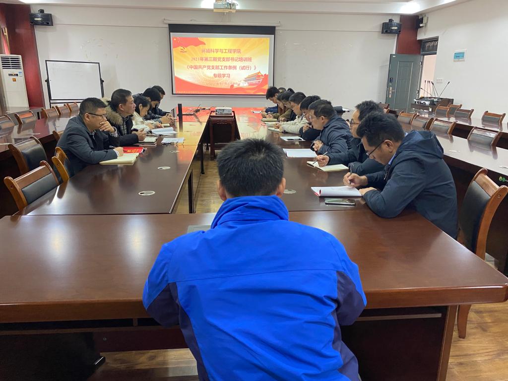 在雁山校区萃华楼12407会议室开展2021年第三期党支部书记《中国共产党普通高等学校基层组织工作条例》《中国共产党支部工作条例(试行)》专题学习,学院全体党政领导班子成员、各支部书记参加会议,会议由学院党委书记姜子亮主持。