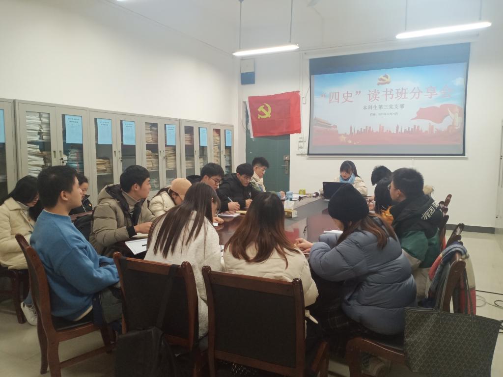 本科生第三党支部于12414开展“四史”读书班分享会党日活动,会议由支部副书记韦春伊同志主持,支部书记孙云龙老师及支部党员参加本次会议。