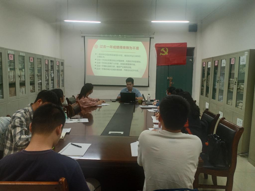 本科生第三党支部于12415开展“学习十三届全国人大五次会议政府工作报告”主题党课,会议由支部副书记韦春伊同志主持,支部书记孙云龙老师及支部全体党员参加本次会议。