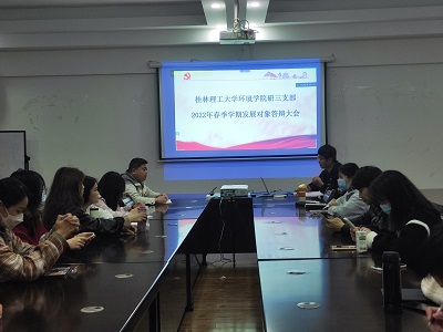 研究生第三党支部在雁山校区萃华楼12407会议室组织召开了本学期党员发展对象答辩大会。会议由支部副书记路一鸣主持,支部书记巩宇飞老师和党支部全体党员同志参加会议。本次大会讨论了关于毛伟等十二名积极分子能否成为发展对象的事宜。