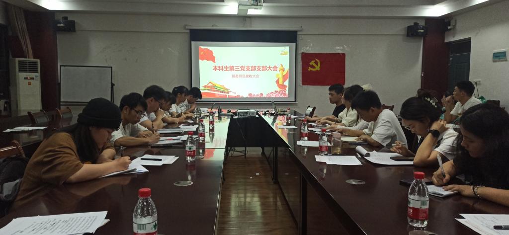 本科生第党三支部在雁山校区萃华楼12407会议室召开了接收预备党员支部会议。会议讨论关于李茜茜等六名发展对象接收成为预备党员的问题。支部18名党员同志参与此次会议,本次会议由支部副书记韦春伊同志主持。