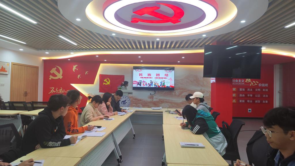 本科生第三党支部于思政大讲堂开展学习“民族团结”主题党日活动,会议由支部副书记李茜茜同志主持,支部书记孙云龙老师及支部全体党员参加本次会议。