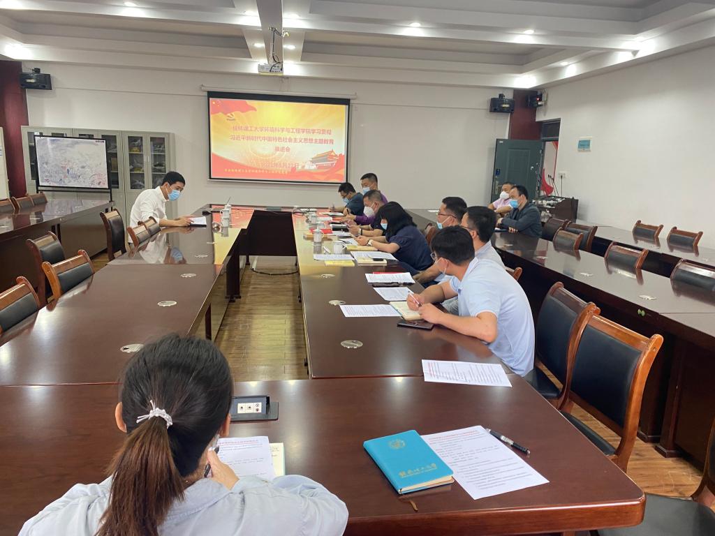 党委领导班子在雁山校区萃华楼12407会议室召开学习贯彻习近平新时代中国特色社会主义思想主题教育推进会。会议由学院党委书记姜子亮主持,学院班子成员、党支部书记、教研室主任参加,部署学院推进主题教育相关安排。