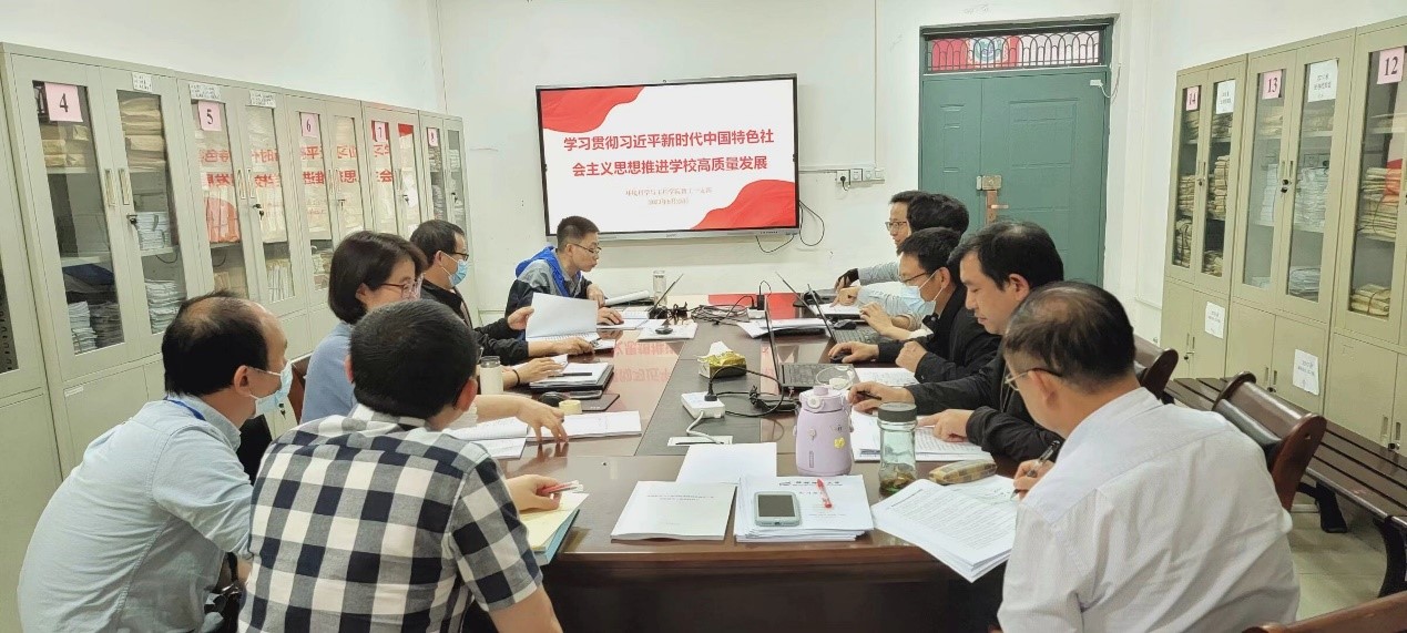 教工一支部在雁山校区萃华楼12415会议室召开学习贯彻习近平新时代中国特色社会主义思想推进学校高质量发展主题教育推进会。会议由党支部书记张帅普同志主持,支部党员教师参加。