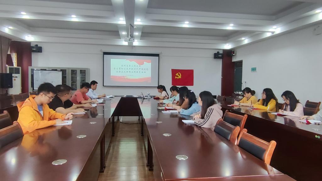 本科生第三党支部在12407会议室开展学习贯彻习近平新时代中国特色社会主义思想主题教育,会议由支部书记孙云龙同志主持,支部全体党员参加本次会议。