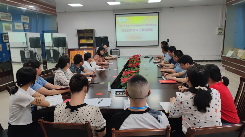 梁延鹏书记带领四支部同志深入调研,并就实验室安全教育、危化品管理、危废处置流程等相关工作同环境学院师生展开座谈交流,切实解决学院师生在日常教学、科研过程中遇到的问题。