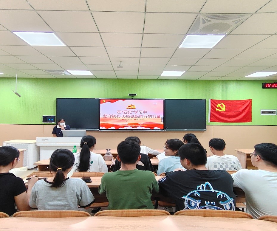 本科生第二党支部在06405教室开展“在‘四史’学习中坚守初心,汲取砥砺前行的力量”主题党课。本次党课由聂壬婷同志主讲。
