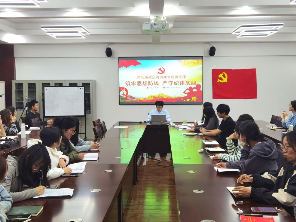 研究生二支部在雁山校区萃华楼12407会议室组织开展了关于“筑牢思想防线 严守纪律底线”的主题党课。本次主题党课由支部书记主持,支部副书记及全体党员同志参加此次党课。