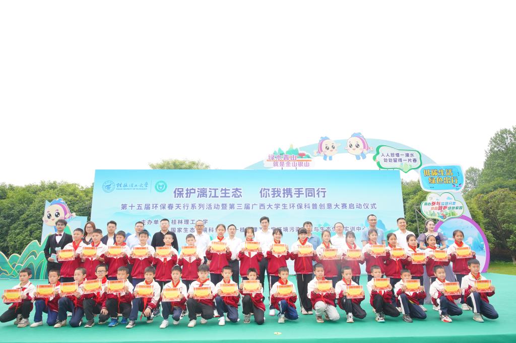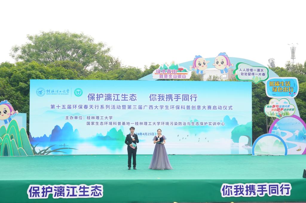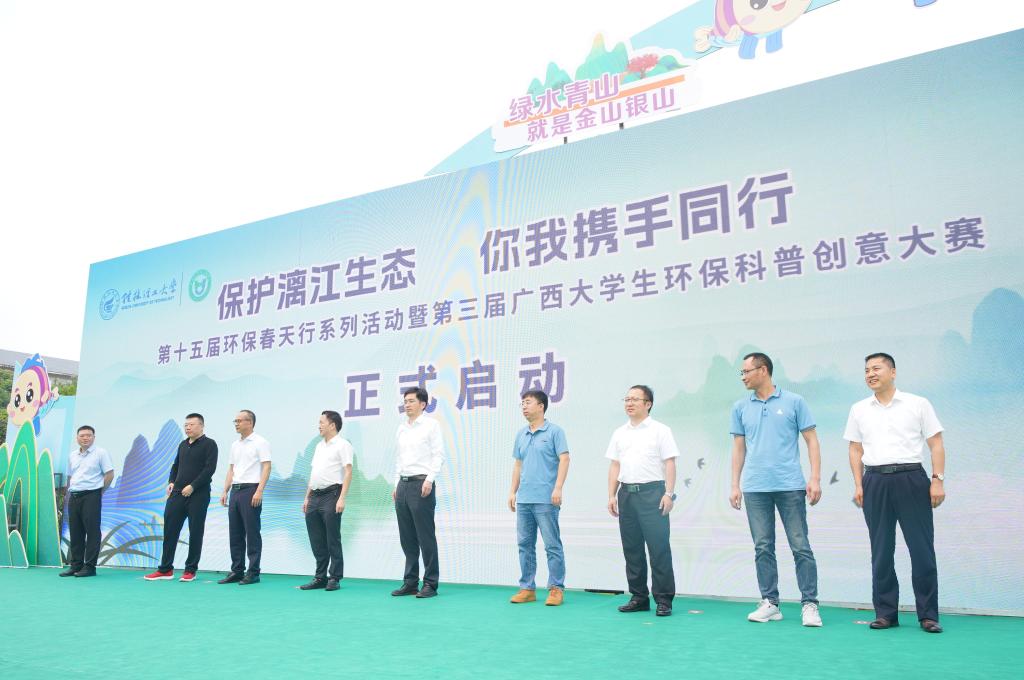 环境污染防治与生态保护实训中心主办的“保护漓江生态,你我携手同行”第十五届环保春天行系列活动暨第三届广西大学生环保科普创意大赛启动仪式在雁山校区举行。学校党委常委、副校长王磊出席活动并致辞,党委常委、宣传部部长叶昊,校长助理、党办校办法务办主任张成龙,广西环境科学学会秘书长王晓飞,桂林市生态环境局、兴安县生态环境局有关领导,各兄弟院校相关领导和嘉宾、学校相关职能部门负责人出席活动,广西大学生环保科普创意大赛参赛代表以及桂林市大埠中心校师生代表参加活动。