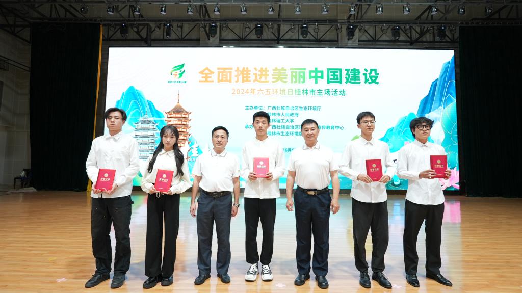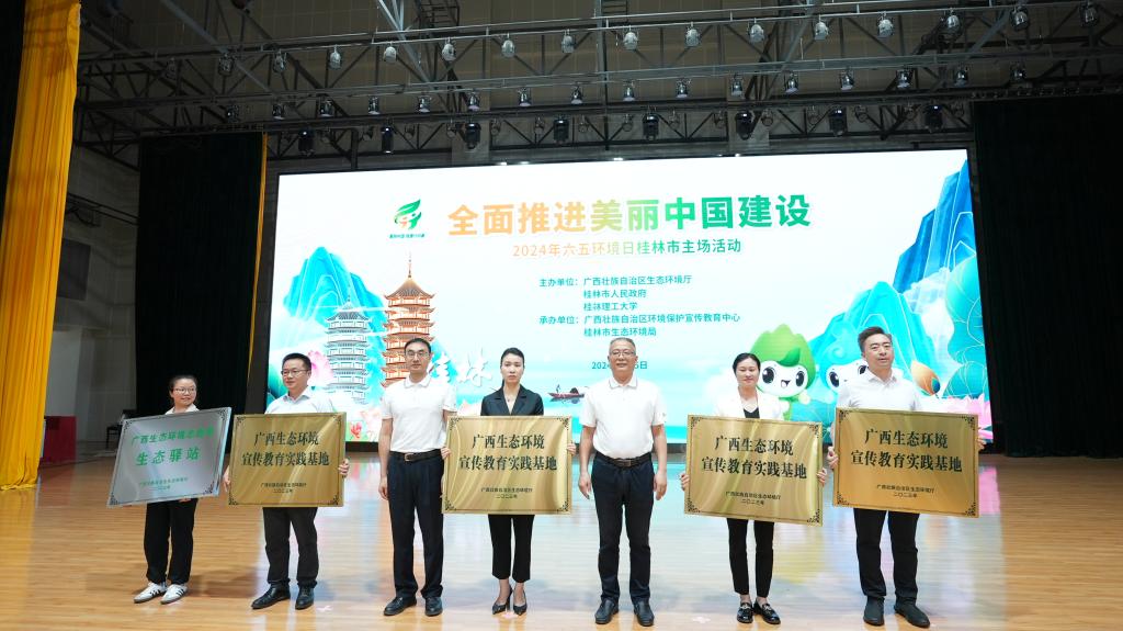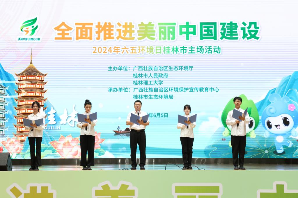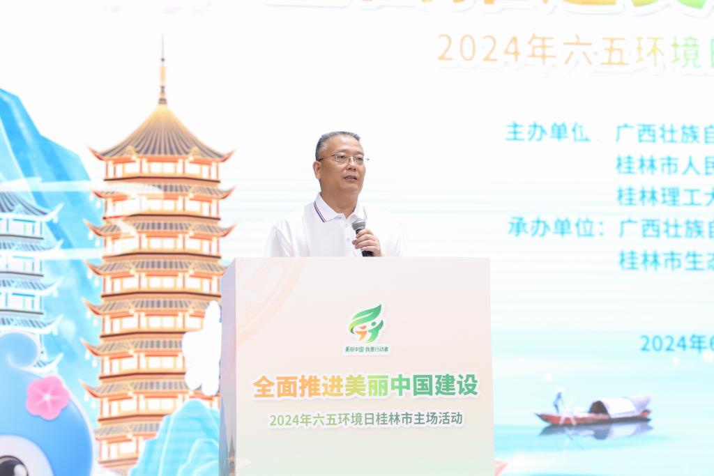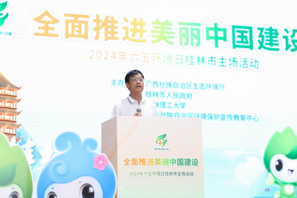 主办的全面推进美丽中国建设——2024年六五环境日桂林市主场活动在我校雁山校区综合体育馆举行。桂林市人民政府二级巡视员周作智,我校校长王敦球,党委常委、宣传部部长叶昊,桂林市生态环境局局长张晓阳,自治区桂林生态环境监测中心主任蒋永光出席活动,桂林市相关部门负责人,有关企业代表,获奖代表,我校相关部门负责人、师生代表,媒体记者,桂林市环保社会组织、环保志愿者代表约350余人参加本次活动。