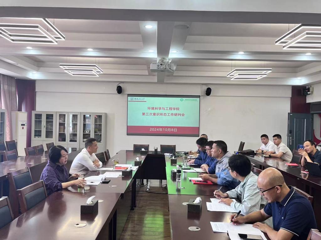在雁山12407会议室召开2024年第三季度意识形态工作研判会议。学院党政班子成员、各科室负责人参加了会议。会议由学院党委主要负责人主持。