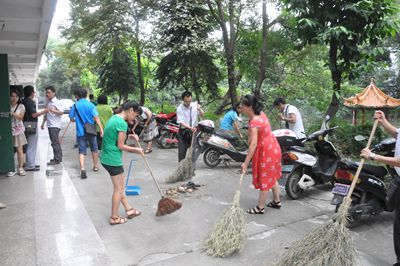 教工一支部全体党员同志在屏风校区建干路社区开展环境卫生保洁清扫活动。