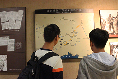 组织党校培训班的同学前往桂林市八路军办事处参观学习,重温党的历史,领悟老一辈无产阶级革命家艰苦创业、不畏艰险的精神,学院辅导员田明浩随行。