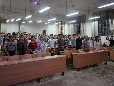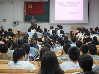 与旅游学院联合分党校2017年秋季学期入党积极分子培训班开班典礼在雁山校区06408教室举行。旅游学院党委书记李少游老师、旅游学院辅导员唐玉福老师、环境学院辅导员夏晴老师及全体入党积极分子参加了开班典礼。开班典礼由教务员唐玉福主持。