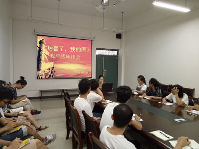 研究生第一党支部组织全体党员于4月25日在雁山校区12415会议室观看电影《厉害了,我的国》,并开展观后感座谈会。会议由一支部副书记黄小敏同志主持,支部全体党员参加。