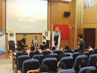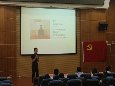 校学生会主席。在会上,他与同学们分享了他在大学四年的学习方式,以及担任学生干部的经历,讲述了他从大一的青涩到如今成熟的过程。