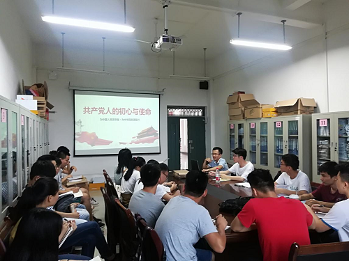6月7日下午,学生四支部在雁山萃华楼12415会议室召开党课学习共产党人的初心与使命。会议由支部书记宋海民老师主持,支部全体党员和本学期发展对象听党课。
